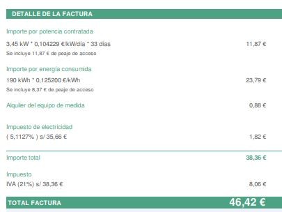 Suponemos un autónomo que tiene indicado en el modelo 037 o en el CIRCE un % del 15% de su vivienda a la actividad y nos envía la siguiente factura de la luz: